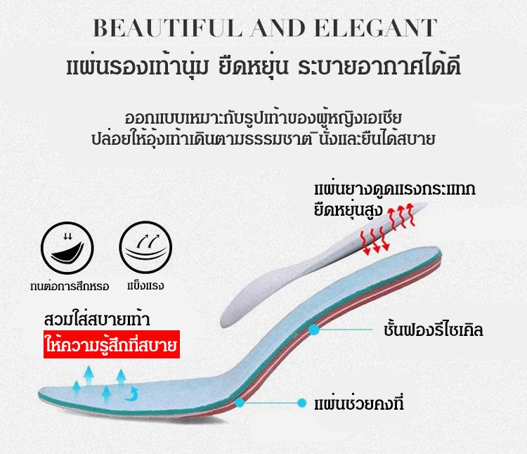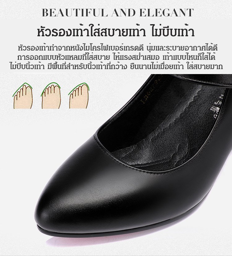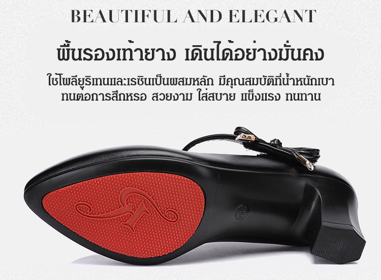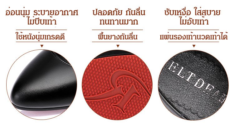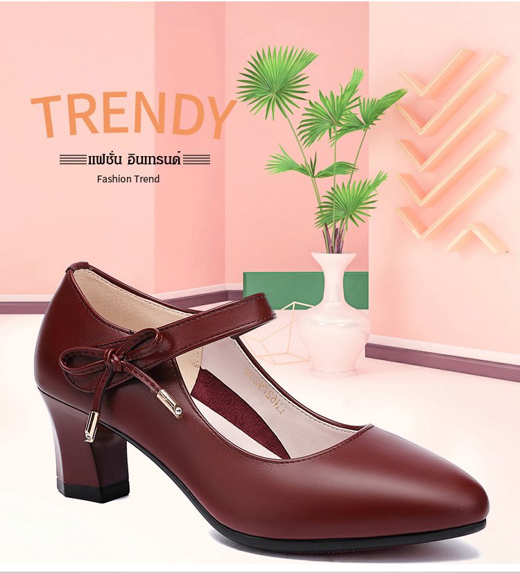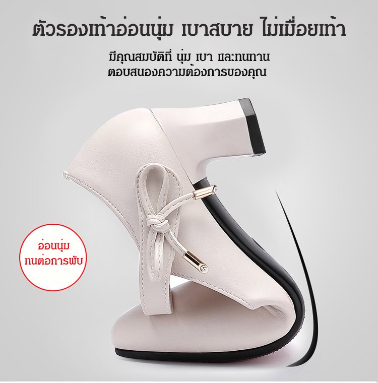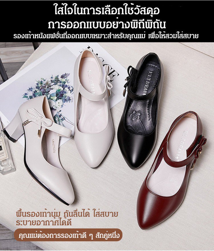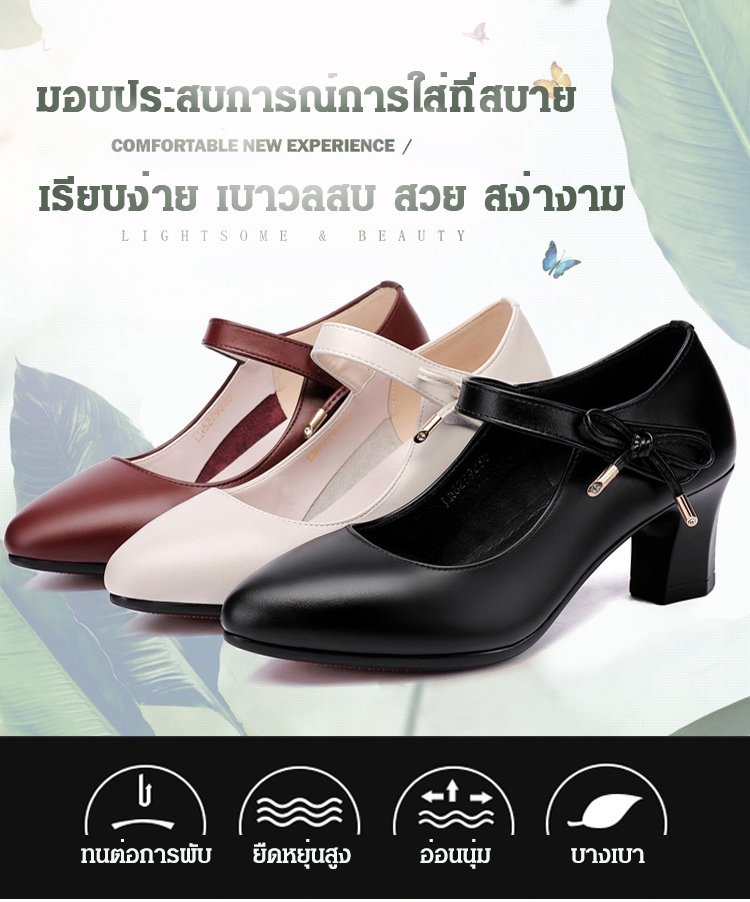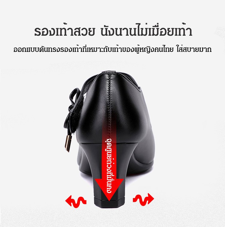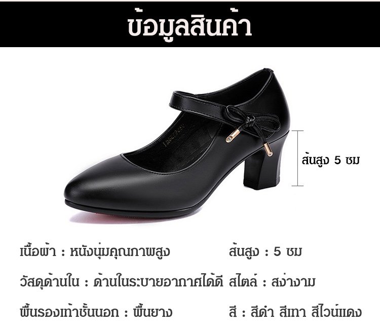 วัสดุหนังวัว ก้านนอกรองเท้านุ่ม ส้นสูง 5 ซม. กันลื่น เดินไม่เมื่อยเท้า ใส่กับกระโปรงและกางเกงก็ดูดี