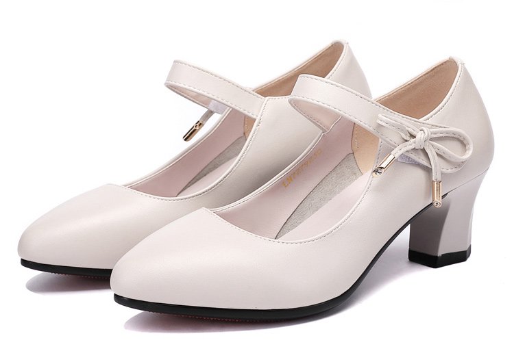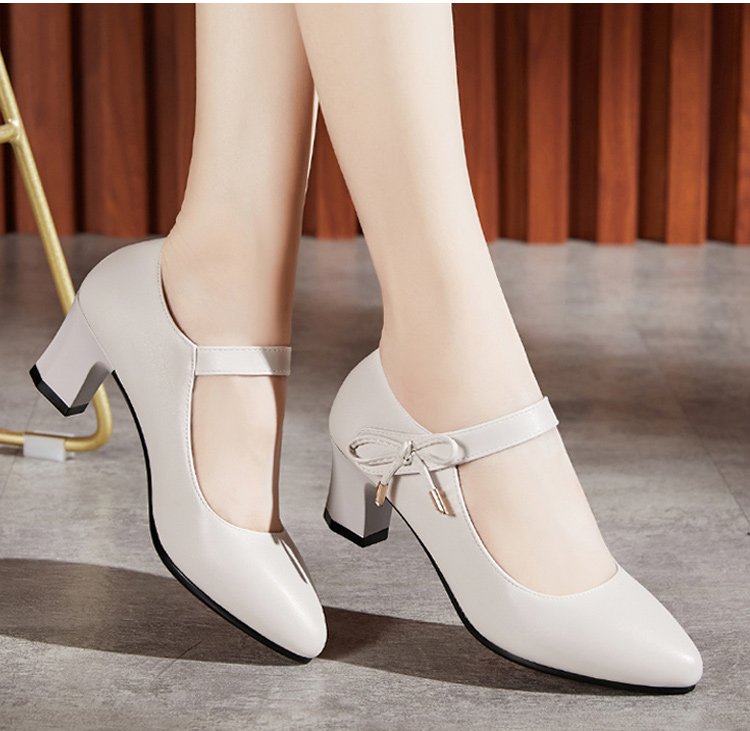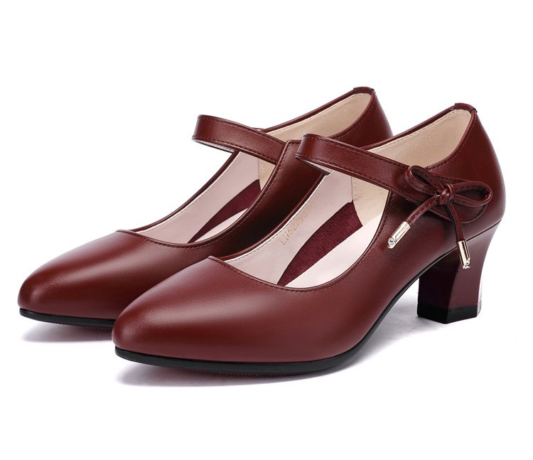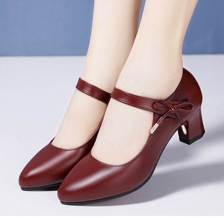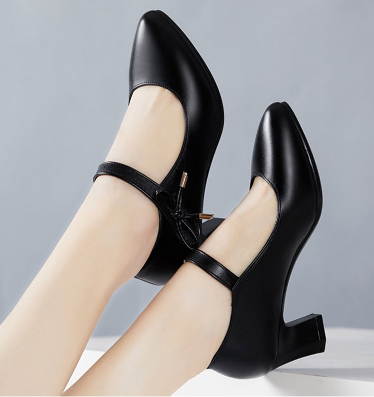 รองเท้าหนังแท้ส้นสูงปานกลาง พร้อมสายรัดหนัง
